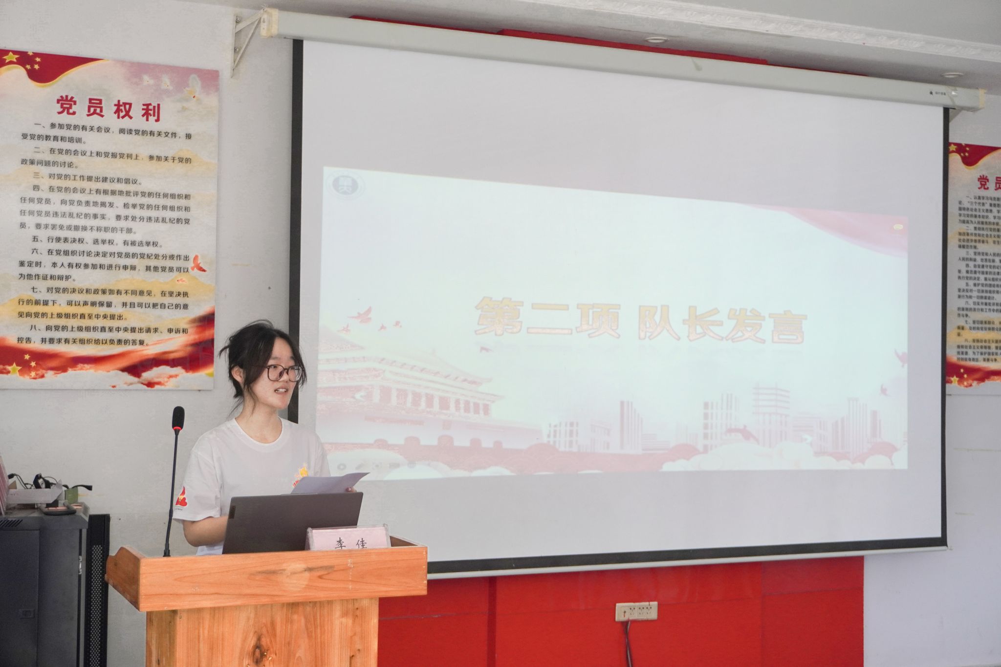 图 2 白霓队队长孙苾昂进行自我介绍