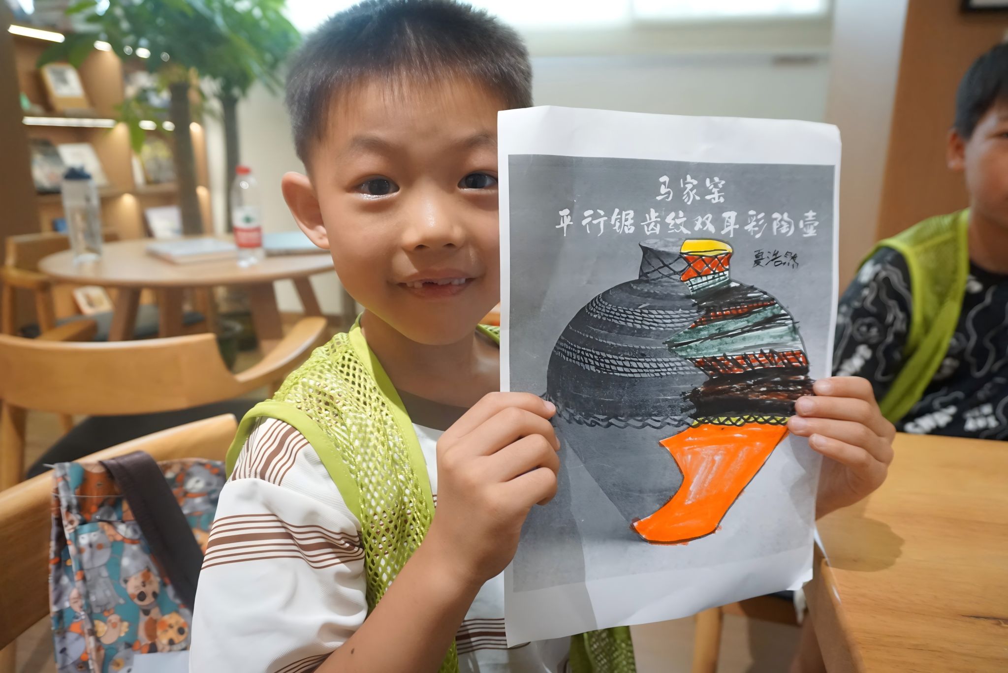 为了让学生认识到文物修复工作的不易,陈晔播放了文物修复师日常工作的视频,并设计了“一起修复文物”的互动环节。在这一环节中,孩子们变身“小画家”,根据彩陶纹样的特殊文化寓意创作图案,勾线定型、施加色彩,用画笔创造出一幅幅各具其美的绘画作品。