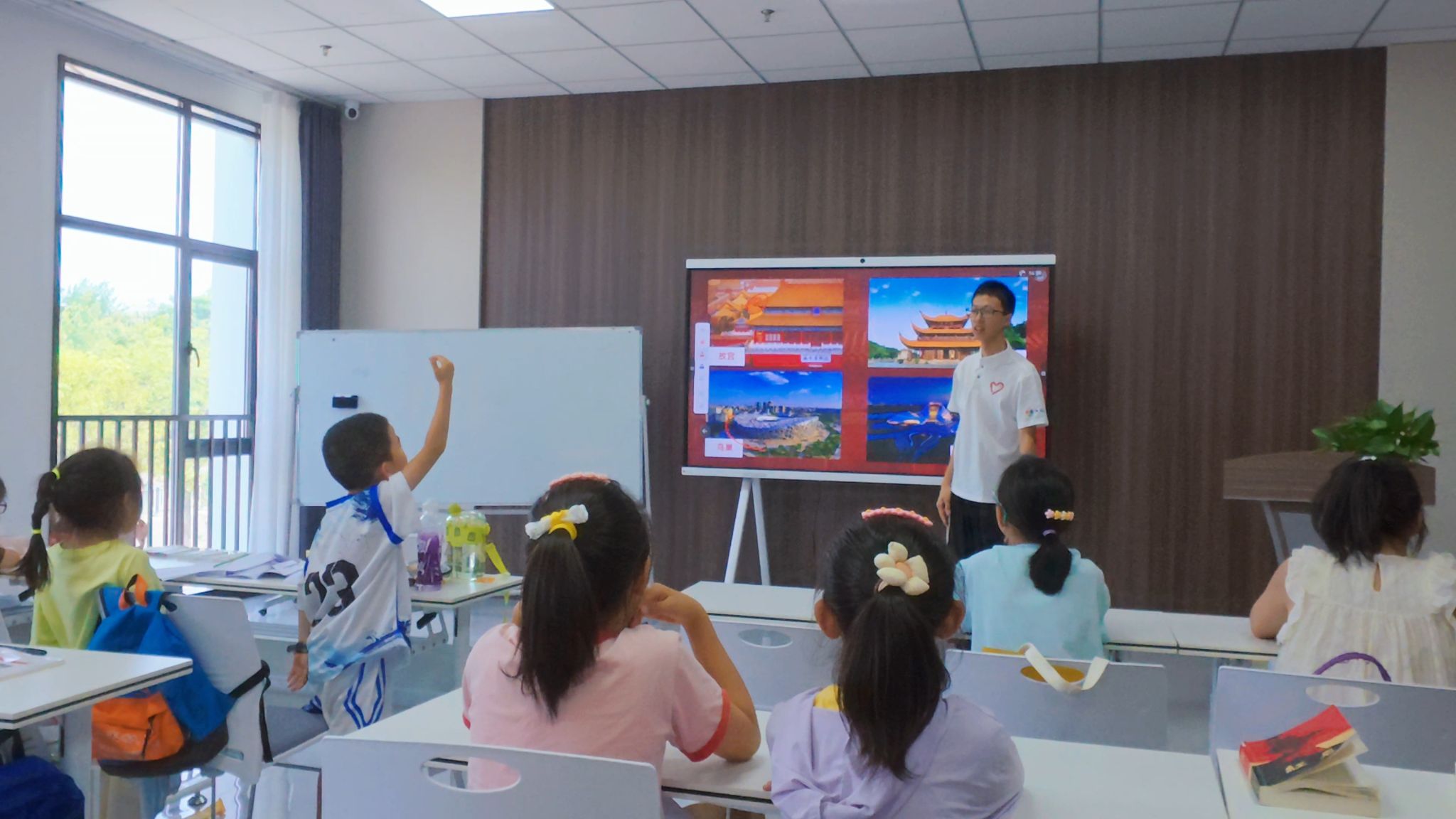 下午,徐海麟指导学生们认识并练习飞盘运动。抛接之间,以盘会友。飞盘在孩子们手中传递,这不仅让孩子们与实践队员迅速熟络起来,更锻炼了孩子们的反应能力。队员们用丰富多彩的活动,为孩子们的“爱心托管班”添上了一抹温暖亮色。