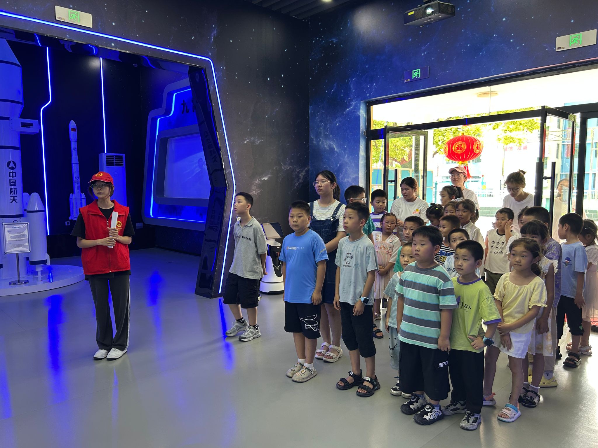 在鸣凤镇青少年活动中心,远安队队员们带领所在点位彩虹班与青苗班学生参观了远安县科技馆。各个特色展区依托各类先进的科普展品,在讲解员的带领下,孩子们在“魅之数学”展区,直观感受并学习了高斯旋律、勾股定理等数学知识,并在游戏中体验数学的“精神体操”。这一过程充分调动了孩子们的逻辑思维与想象力。在“天籁之声”展区,通过对声音的探索,孩子们感受了乐音与噪音的区别,学习认识不同声波,在充满声音的展馆里感受探知世界的乐趣。