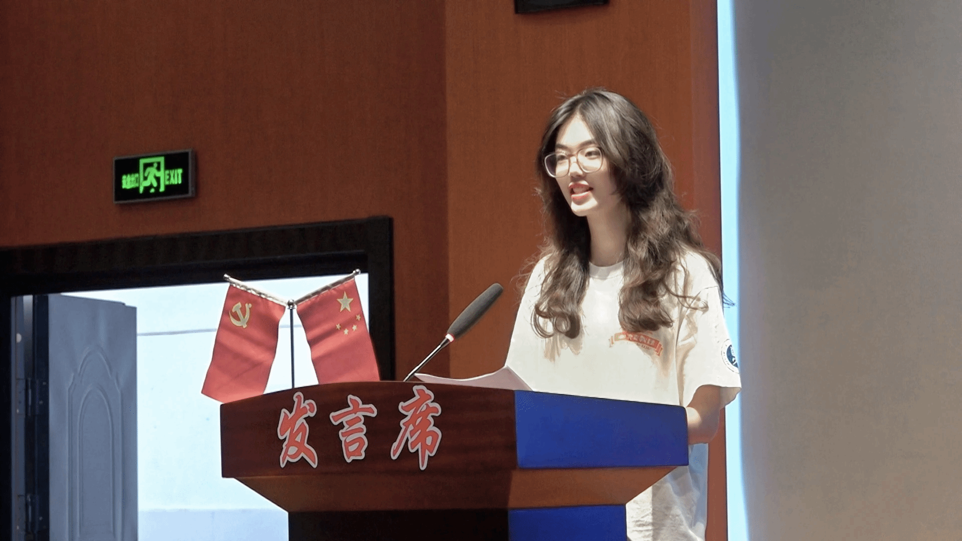 恩施队队长蔡依汛作为大学生青年志愿者代表发言。她介绍道,自己不但是本次学校赴百福司镇支教的志愿者老师,更是土生土长的来凤人。这双重身份让她对此次暑假“爱心托管班”充满特殊的期待,也深感自身责任重大。蔡依汛表示,在参与暑假“爱心托管班”志愿服务期间,她会用“专业”与“用心”做好日常陪伴与引导,用“担当”与“协作”保障托管班有序运转,用“共情”与“资源”让服务充满本土温度,让每个孩子都能在暑假“爱心托管班”感受到被重视、被呵护,在熟悉的乡土文化里扎下根、爱上家。