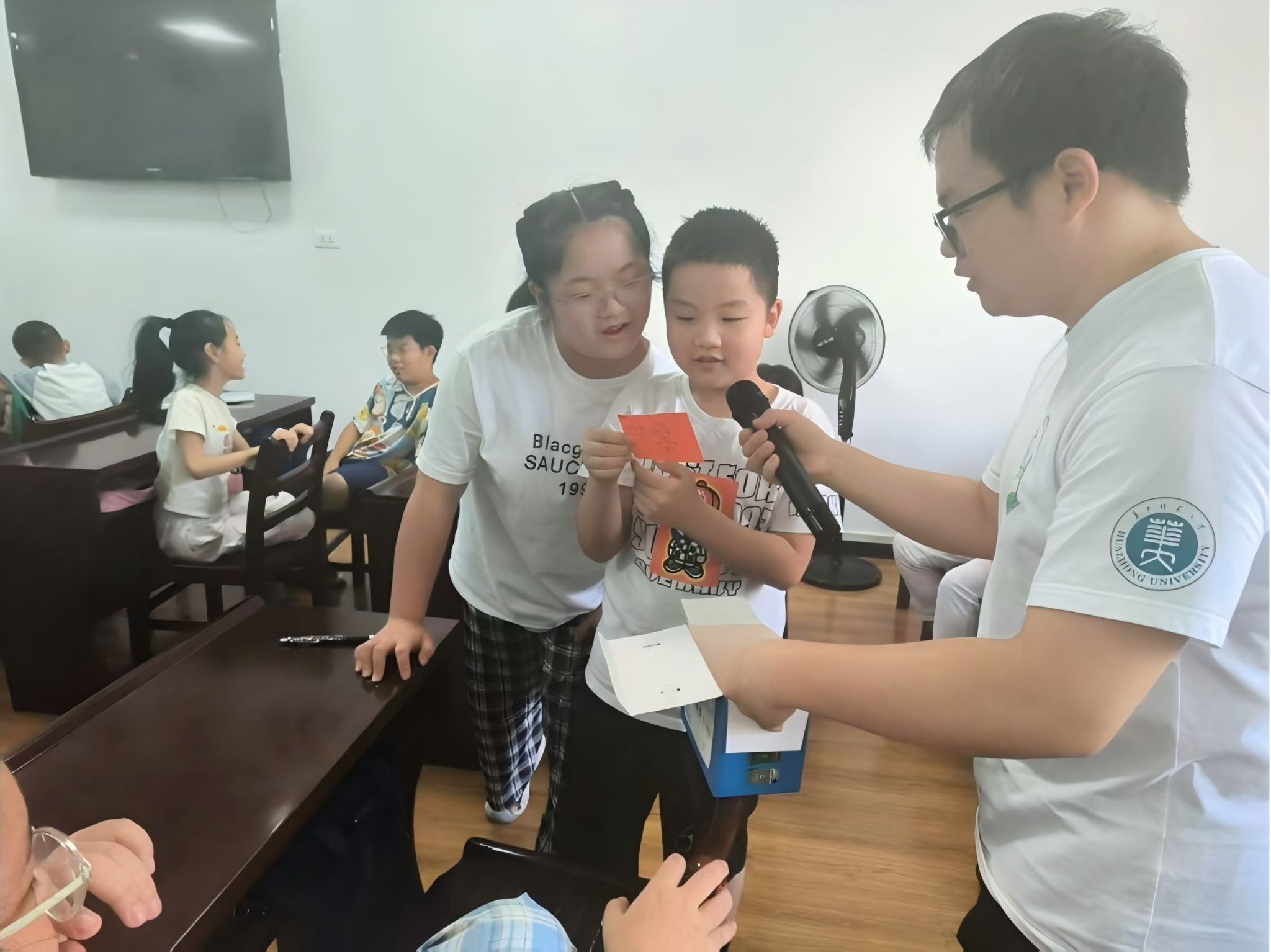 华大青年讯(通讯员 胡馨月)7月9日,华中师范大学外国语学院心火支教团新洲队(以下简称“新洲队”)精心开展了系列心理课程。队长蔡晓带来《当冲突发生时》课程,队员谭安松带来《优点VS缺点》课程。从妙趣横生的互动游戏到沉浸式的深度体验,从细腻的自我探索到默契的同伴协作,他们为孩子们的心灵成长搭建起一片广阔天地。