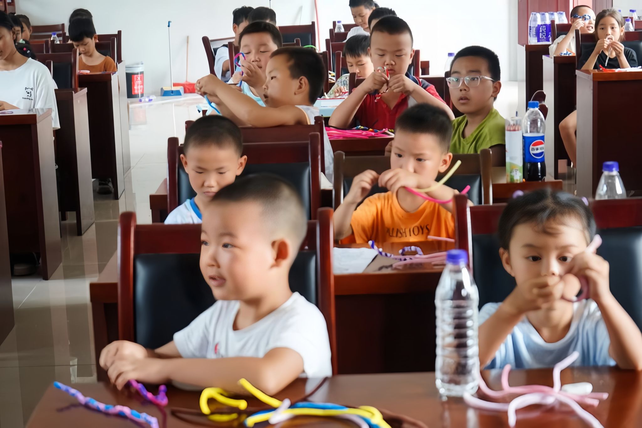 (图2:学生们专注创作扭扭棒作品)