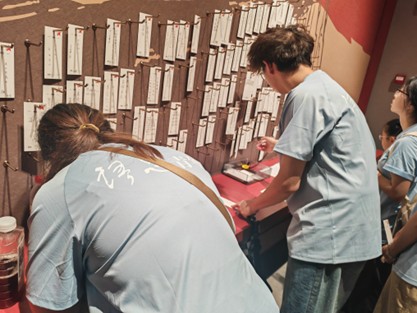 参观接近尾声,实践队员们在互动区的明信片上写下感悟。“铭记历史,传承红岩精神,将青春奉献给教育事业,让红色基因代代相传”“愿以吾辈之青春,守护盛世中华”。话语中饱含着队员们对革命先烈的崇敬之情和对未来的坚定信念,更提醒队员们不忘历史、砥砺前行。