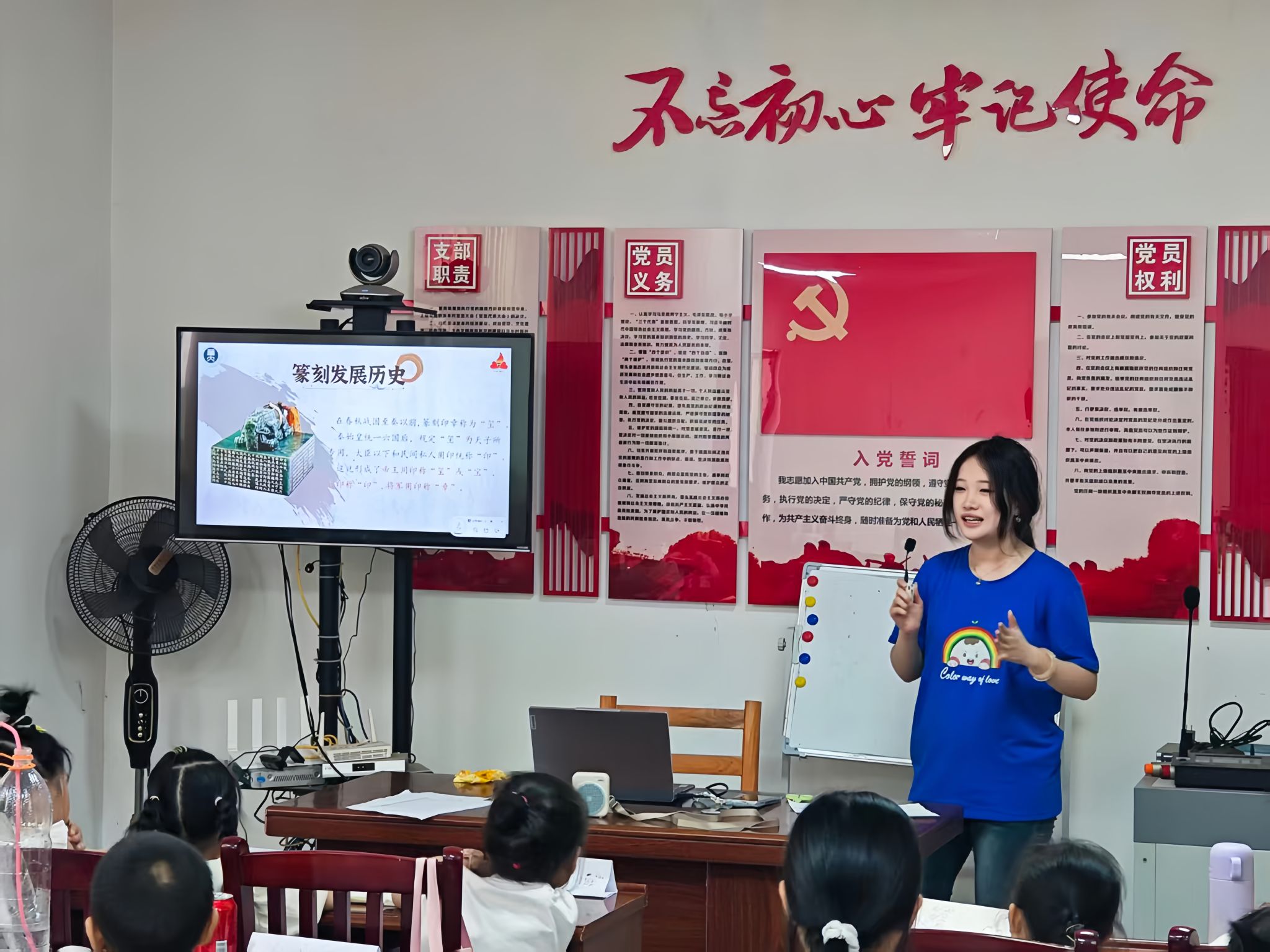 华大青年讯(通讯员 陈蓝珺 叶涵 蔡依汛)7月16日,华中师范大学外国语学院心火支教团恩施队(以下简称“恩施队”)在湖北省恩施土家族苗族自治州来凤县百福司镇宣抚堡村开设汉字发展历史课程。此课程聚焦美育与文化传承,将理论讲解与实践体验结合,使学生们在笔墨镌刻间感受汉字艺术的千年魅力。本课程由恩施队队员陈蓝珺讲授。