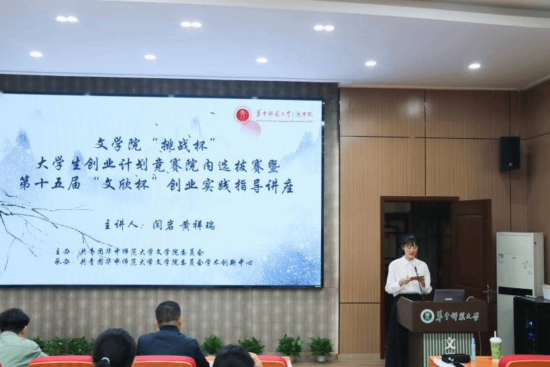 华大青年讯(通讯员 李思梦 黄雨欣 李雪琴)10月15日晚,文学院“挑战杯”大学生创业计划竞赛院内选拔赛暨第十五届“文欣杯”创业实践指导讲座在文学院一楼报告厅举办。活动特邀我校“挑战杯”国赛获奖团队代表——马克思主义学院博士研究生闫岩、法学院博士研究生黄祥瑞担任评委及主讲人。