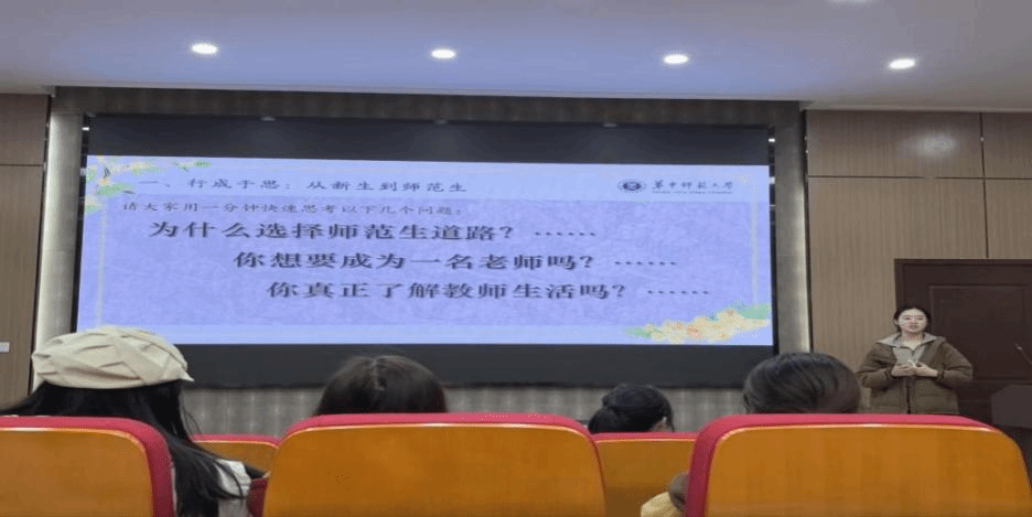 华大青年讯(通讯员 舒爽 宋永博)11月19日晚,由共青团华中师范大学文学院(以下简称“文院”)团委会举办、文院团委学生会学术创新中心承办的2025年新生分享会于文学院一楼报告厅举行。2023级文院本科生杨思远、陈鑫颖受邀主讲公师场,谭可言、林诗洋受邀主讲非师场。文院团委学生会学术创新中心干事倪美婷主持分享会,2025级新生到场参与。