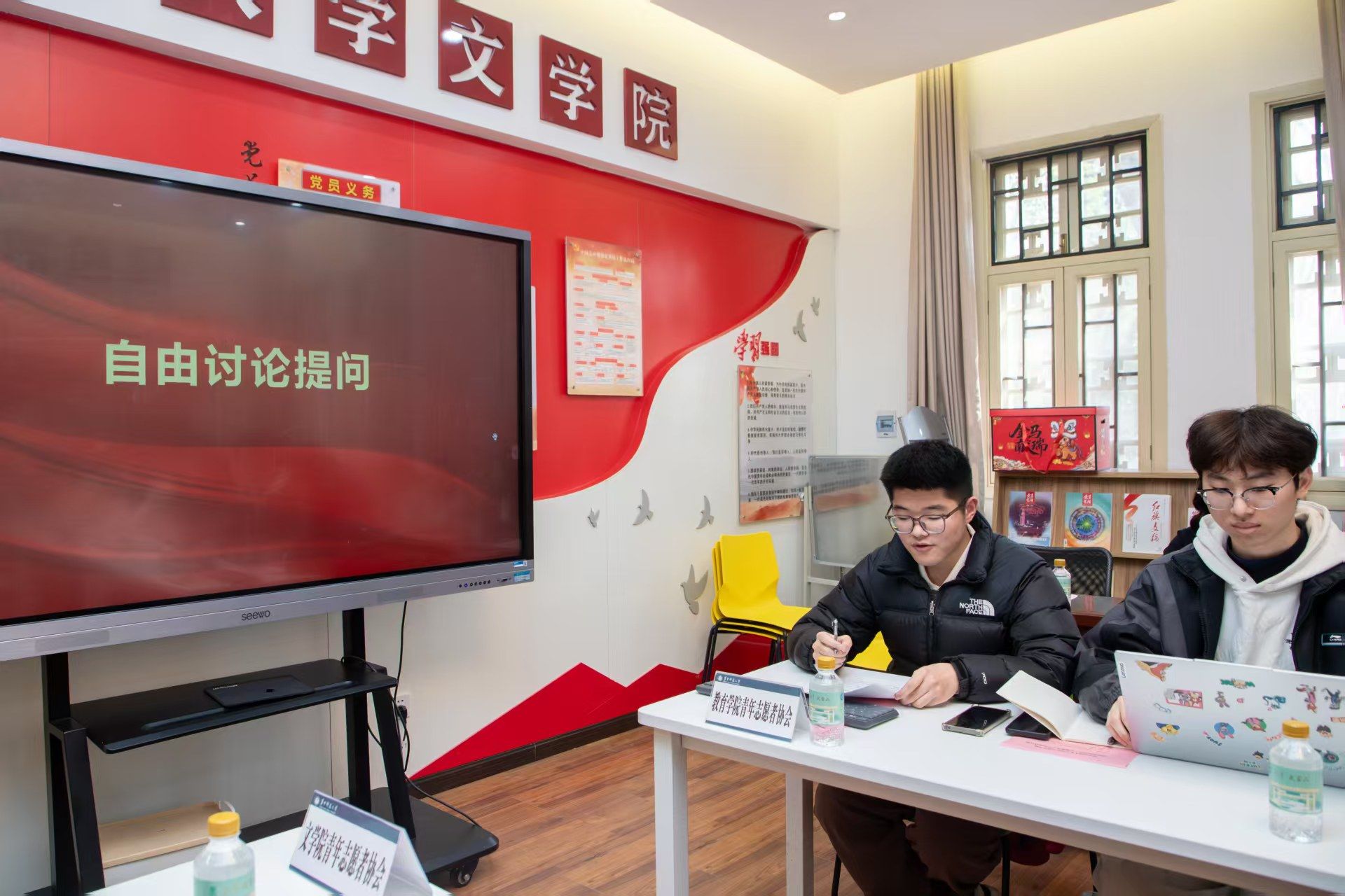 自由讨论环节,双方成员就如何发挥专业优势开展志愿服务品牌活动进行了深入交流,还分享了西部计划的动员实施情况,探讨了劳育与志愿服务时长机制、特色IP形象构建等话题。