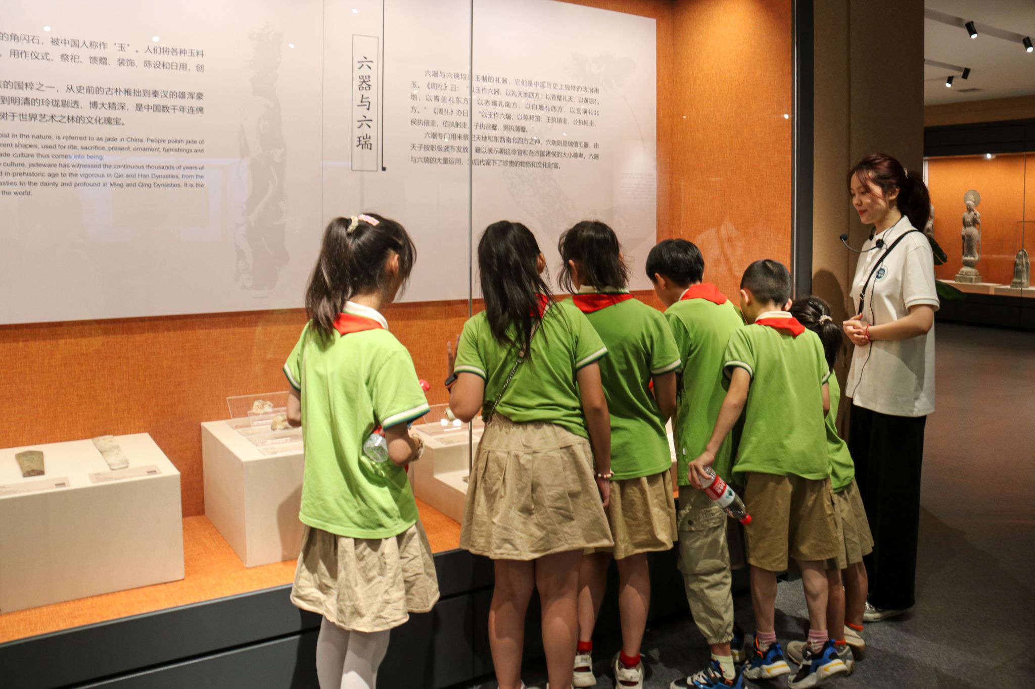 生物博物馆内,琳琅满目的2000余件珍贵标本成为生动的课堂。志愿者耐心讲述标本背后的科学知识与历史故事,带领同学们了解标本的制作工艺及其背后的生态意义,并重点介绍了濒危物种中华鲟,引发孩子们对生态保护的关注与思考。随后,大家走进校博物馆,参观器物珍品厅、钱基博捐赠文物展厅与书画厅,孩子们得以近距离欣赏文化瑰宝,倾听藏品背后的文化故事,文化自信与民族自豪感在无声中得以增强。