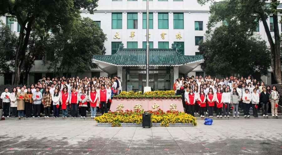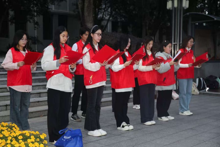 11月10日上午,为引导青年学子牢记新闻使命,厚植家国情怀,传递中国声音,新闻传播学院(新传)在文华公书林举办升旗仪式。新传党委副书记程秀莉、团委书记李鸿、研究生辅导员何思意出席本次活动,新传团委学生会组织部部长李睿思担任主持,百余名师生到场参与。