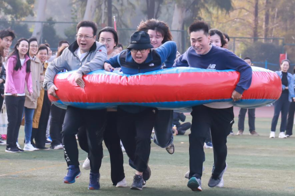 与此同时,教职工“披萨战士”项目比赛正在如火如荼地进行。学院教学副院长陈科、工会主席陈欧阳率领七名老师在多次训练后,以默契的配合取得小组第二的成绩。在教职工足球射门项目比赛中,新传教职工沉着冷静地完成比赛。