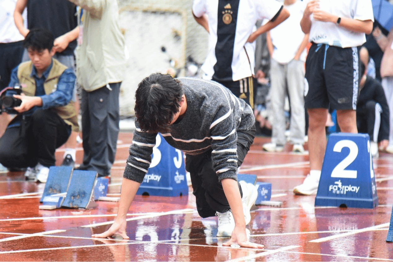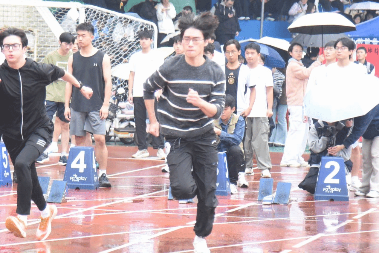 烈阳不减英雄气,细雨更显健儿魂。我们相信,那个在起跑线上屈膝、弓腰、屏息的身影,会在更多赛场、更远的未来,继续用自信而从容的步伐,跑向属于信管、也属于他自己的星辰大海。