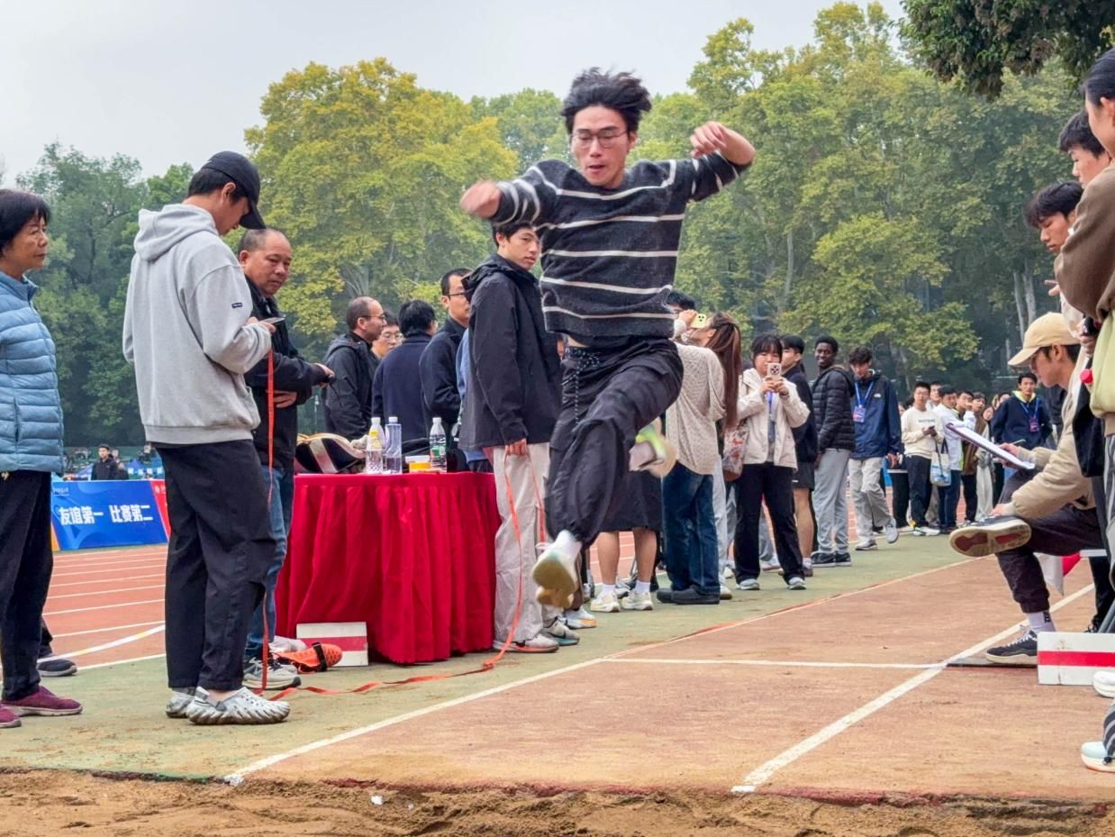 立定跳远赛场,信管学子静立如松。预摆、下蹲、蓄力——瞬间爆发,双腿蹬地如弹簧,身体腾空展如鹰,在空中划出优美弧线后稳稳落地。沙坑中深浅不一的脚印,是信管学子拼搏的印记;空中舒展的弧线,是青春向上的姿态。这一跃,跃出的不仅是沙坑上的距离,更是他们日复一日晨训晚练的积累,是信管人面对挑战时勇往直前的精神气概。