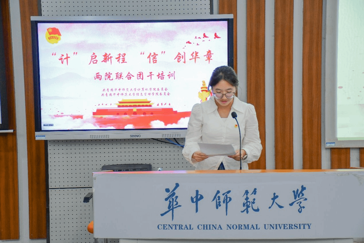 华大青年讯(通讯员 张睿琪 李紫涵)11月14日,信息管理学院与计算机学院在南湖综合楼N107教室举行“‘计’启新程,‘信’创华章”主题团干培训结业典礼。计算机学院党委副书记庄甲鹏、信息管理学院团委书记王乐、计算机学院团委副书记赵丹莅临本次会议,由团委组织部闫昱硕主持。