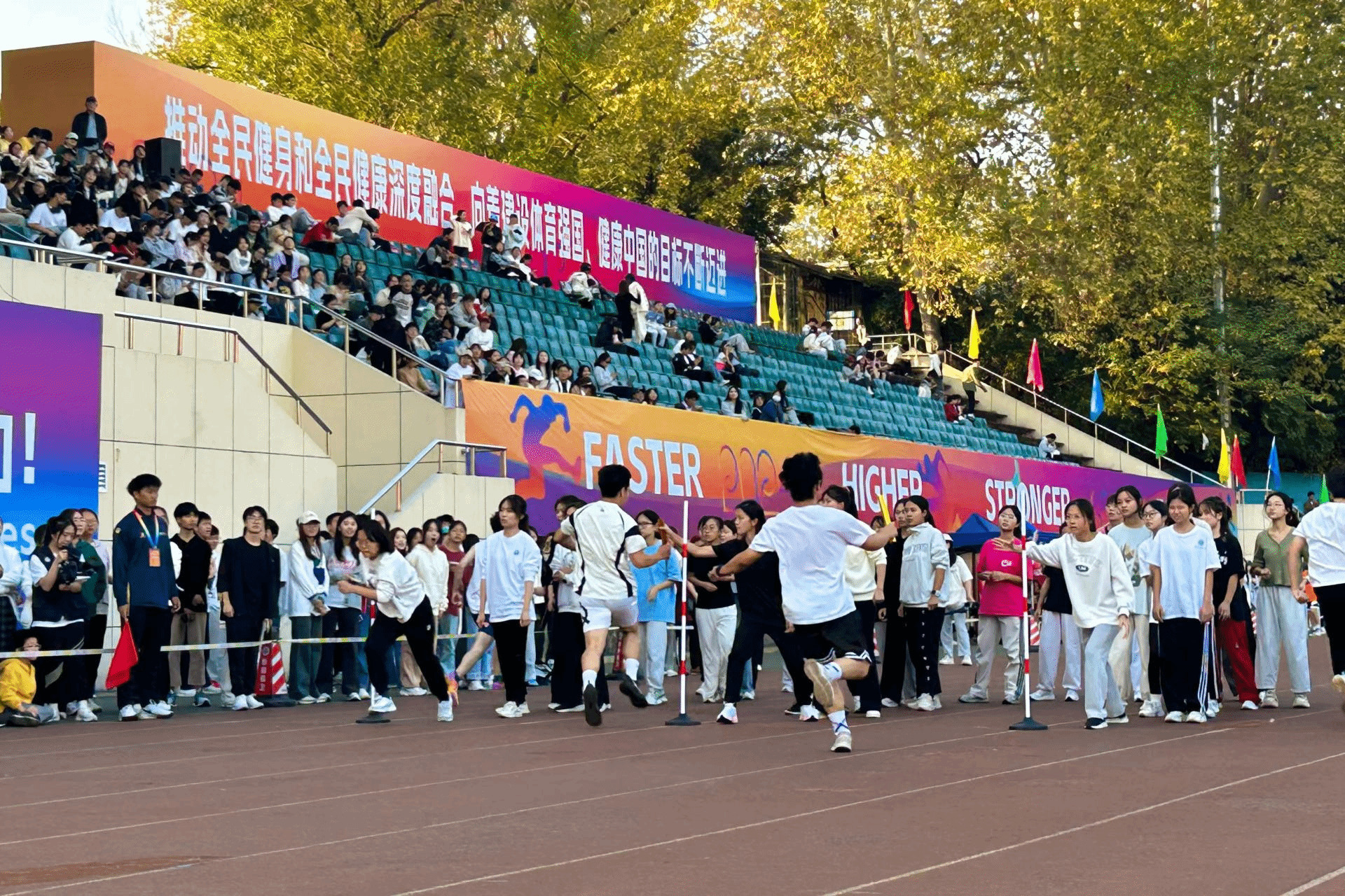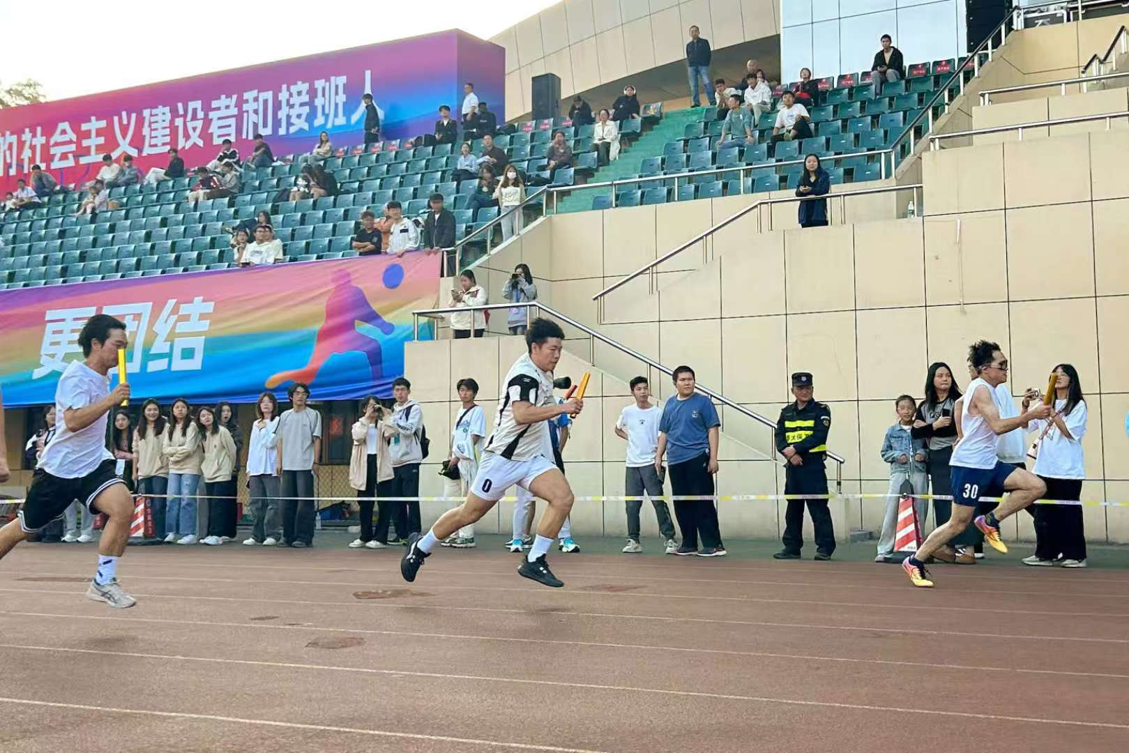 下一棒的选手朱玟霏身体前倾,眼神锐利,早已盯紧队友手中的接力棒,她伸出手,准确无误地抓住飞来的棒。她的身体随即弹射而出,步伐轻快,风在她耳边呼啸,观众的欢呼声与她的步伐融为一体。交接棒的瞬间,是信任与责任的传递,是信管学子团队精神的体现。他们的眼神中透露出自信和决心,诠释着拼搏和责任,每一次全力冲刺,都是为了团队的荣耀,都是为了不负刻苦训练的时光。