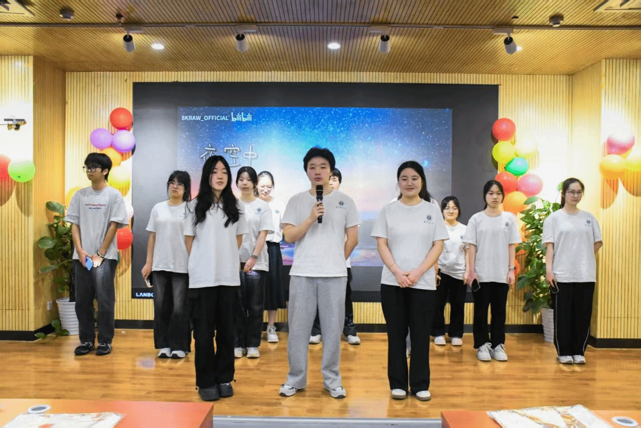 权益与调研中心的《夜空中最亮的星》拉开晚会帷幕,演唱者们用独特的嗓音配合手机灯光营造出星空效果;融媒体中心的诗朗诵《光在光里交接》声情并茂,传递出青年对理想与传承的思考……互动游戏环节更是将现场气氛推向高潮,全体团学成员积极参与,现场欢呼声此起彼伏。晚会的压轴节目《学创配音秀》别出心裁,表演者以独特创意和精彩表现模仿经典影视片段,重现热门台词。最后,全体观众在台上合影留念,记录这一刻的相聚相伴,为晚会画上句号。