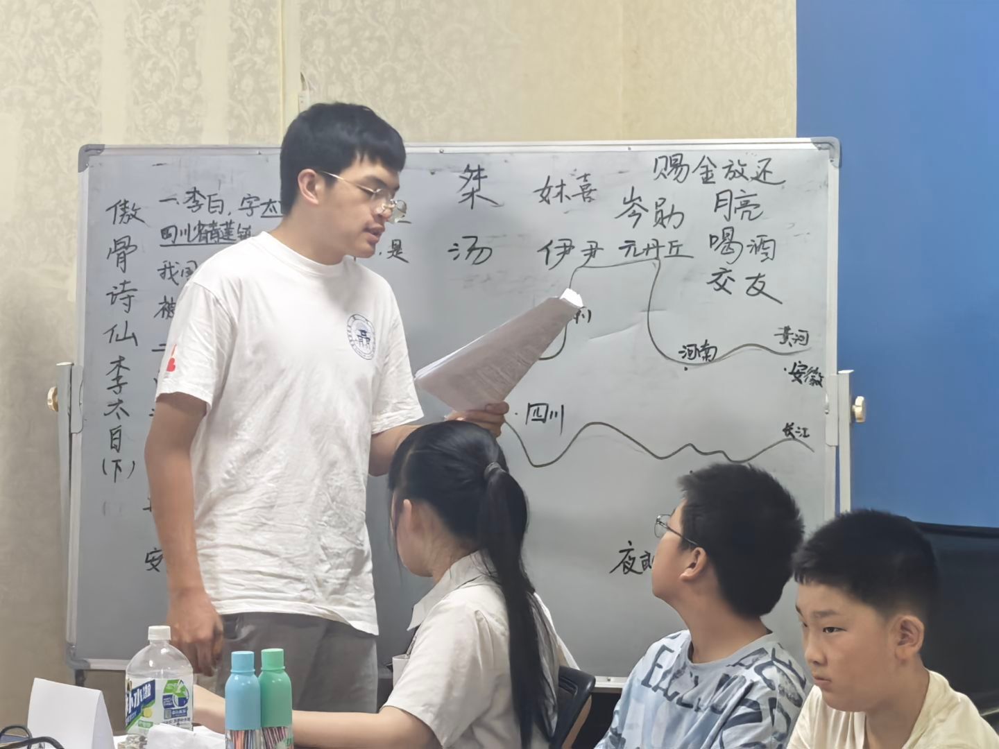 在周集村,服务队成员每天为20余留守儿童集中授课,重点教授演讲、朗诵、文学积累阅读、音乐演唱、汉字书写等内容,寓教于乐的同时潜移默化地提升了留守儿童的普通话水平。朗诵课上,服务队成员运用一流的普通话水平,结合对文学作品的理解,为留守儿童讲述李白、陆游的诗词故事。课堂中,同学们能够用基本规范的普通话复述文学故事、用声情并茂地语言朗诵诗词,在丰富文学积累的同时摆脱了乡音带来的交流不便困扰。