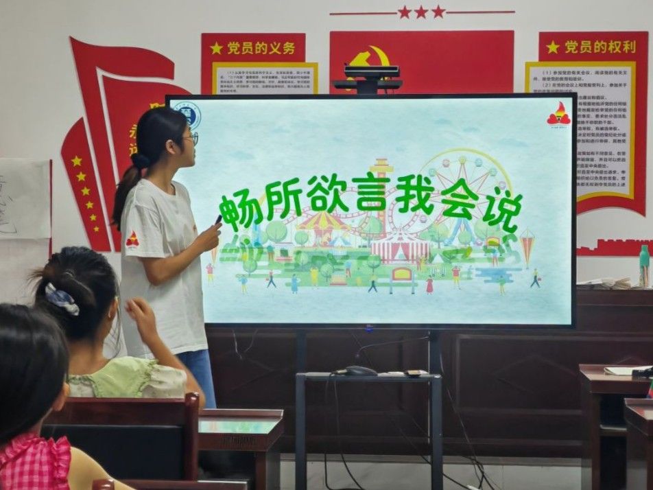 华大青年讯(通讯员 陶政翰)7月18日至25日,华中师范大学政治与国际关系(以下简称“政国”)学院“语润童梦”推普送教志愿服务队在荆门市钟祥市石牌镇周集村、贺集社区两个点位,针对当地的留守儿童群体展开了推普送教活动,活动通过普通话教学、规范汉字书写、朗诵技巧传授、红歌教唱等多种形式展开。同时,服务队前往留守儿童家庭、留守儿童服务中心进行深度访谈调研,通过“调研+教学”双线并行模式展开普通话推广活动,推普成果显著。