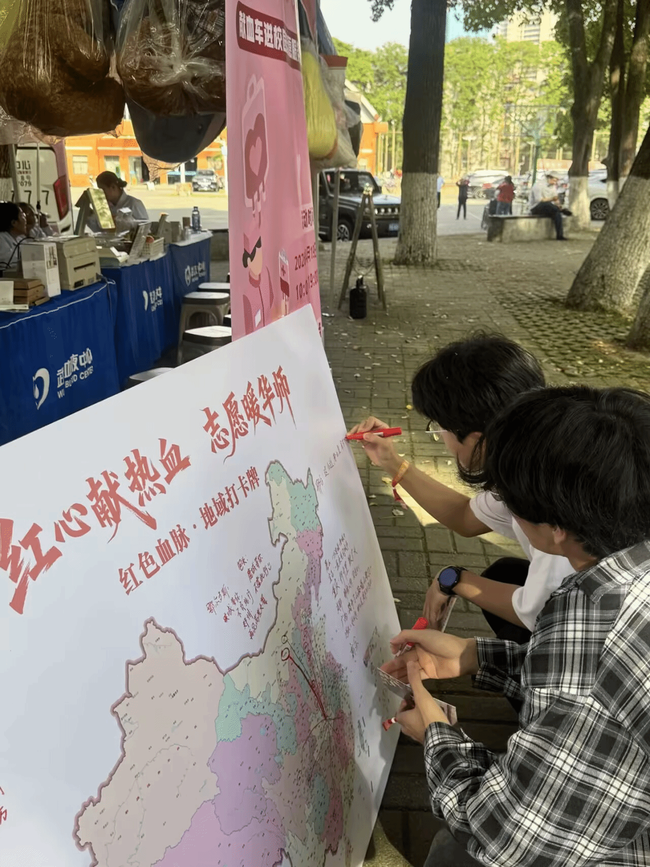 特色活动组精心打造“生命接力·爱心传递链”“献血心语·声音明信片”“红色血脉·地域打卡”三项互动环节,进一步丰富公益活动形式。志愿者为参与献血的师生发放定制爱心手环,在献血完成后加盖专属纪念印章,定格公益爱心瞬间;协助参与者录制爱心寄语并运用NFC芯片导入音频,拓宽公益传播形式;借助主题打卡地图开展留言互动,拉近青年学生与公益活动的距离,让无偿献血理念更深入人心。