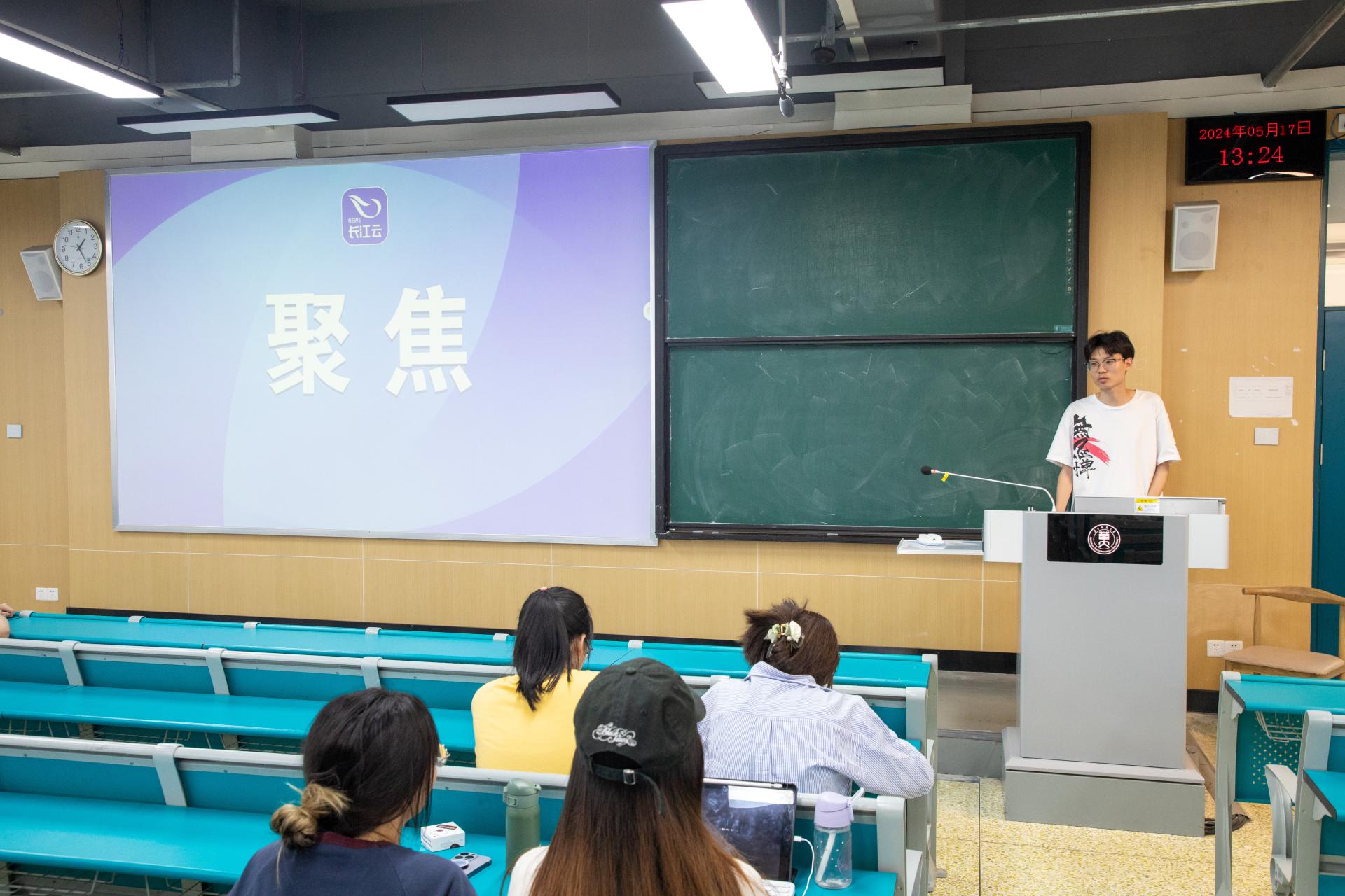 李骕雨讲述了自己在“长江云”实习期间的故事经历和成长收获。他详细介绍了新闻媒体单位的工作特点和运行架构,并分享了自己在实习期间的工作安排和岗位职责。同时,他还结合其他同学在新闻媒体单位实习的基本情况,为同学们系统阐述了不同岗位的工作要求。
