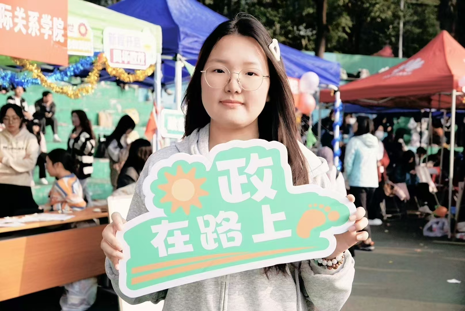 华大青年讯(通讯员 李俊希)10月31日至11月1日,华中师范大学2024年运动会于佑铭体育场举行。天高云淡,绿荫交错,在这怡人之景中,政治与国际关系学院(以下简称“政国”)学子奋勇向前的拼搏姿态愈加耀眼。而赛场下,还有一群志愿者们在努力付出,以激昂向上的热情为每位运动员提供帮助和支持。其中,就包括2024级本科生杨玉涵。