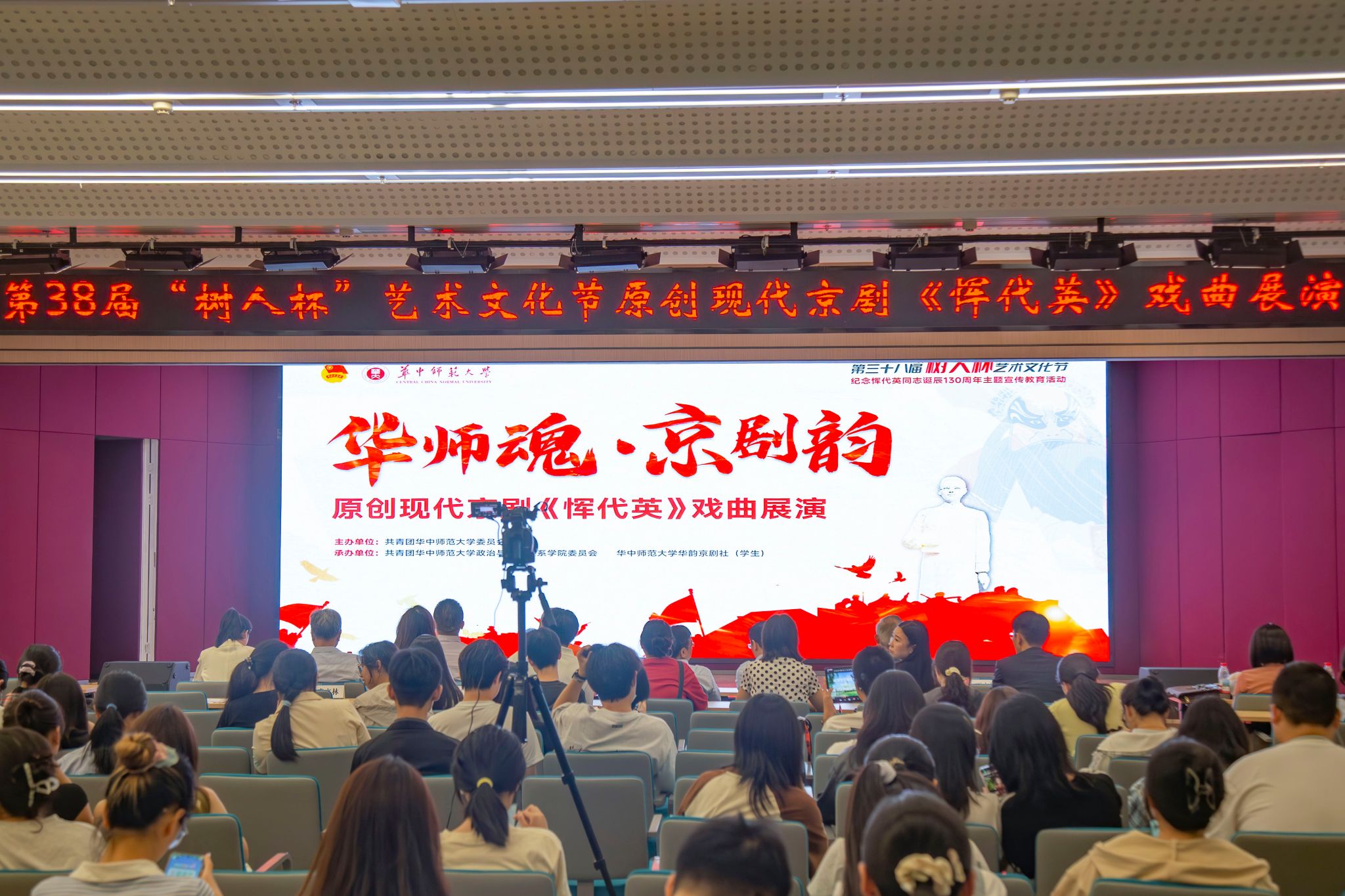 华大青年讯(通讯员 唐士皓)5月25日下午,正值华中师范大学第38届艺术文化节,“华师魂・京剧韵”原创现代京剧《恽代英》在文科科研楼101报告厅内展演。本次活动由政治与国际关系学院主办,通过四幕剧目再现革命先烈恽代英的英雄事迹,全校师生齐聚一堂,在光影流转中追溯革命星火,于平仄韵律间聆听历史回响。