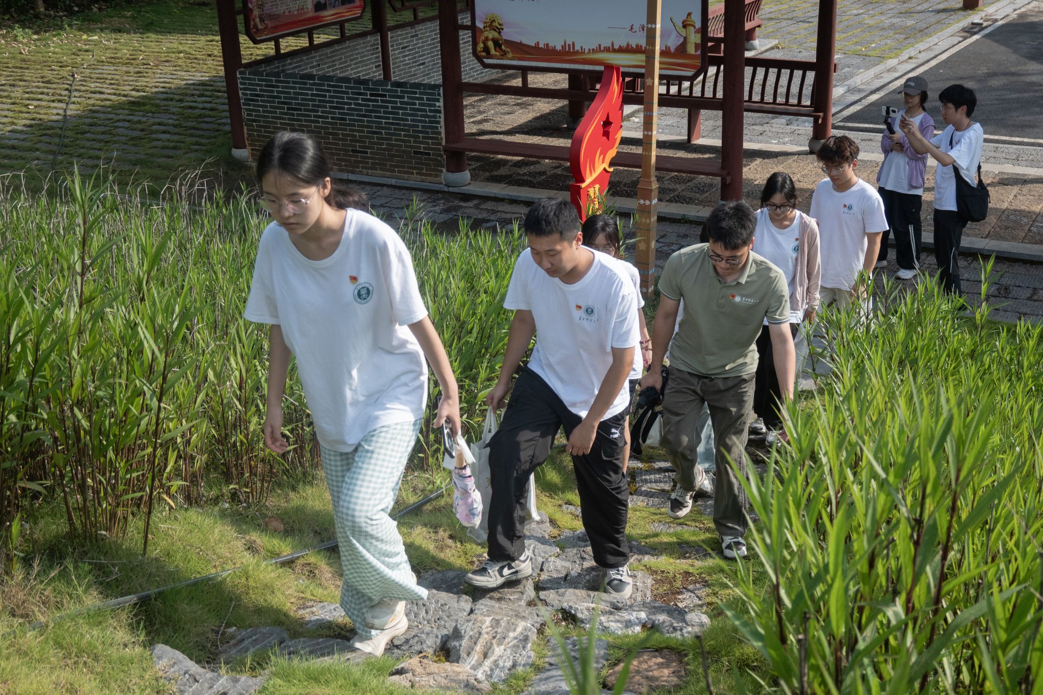 之后,队员们踏上永安关长征步道,再走红军长征路。路旁的草木依旧,路上的人换了一批又一批,登上山坡,成员们不禁吟诵起“红军不怕远征难”的诗句,在诗词中深刻感受革命先烈们不怕艰难险阻、英勇奋斗的革命精神。