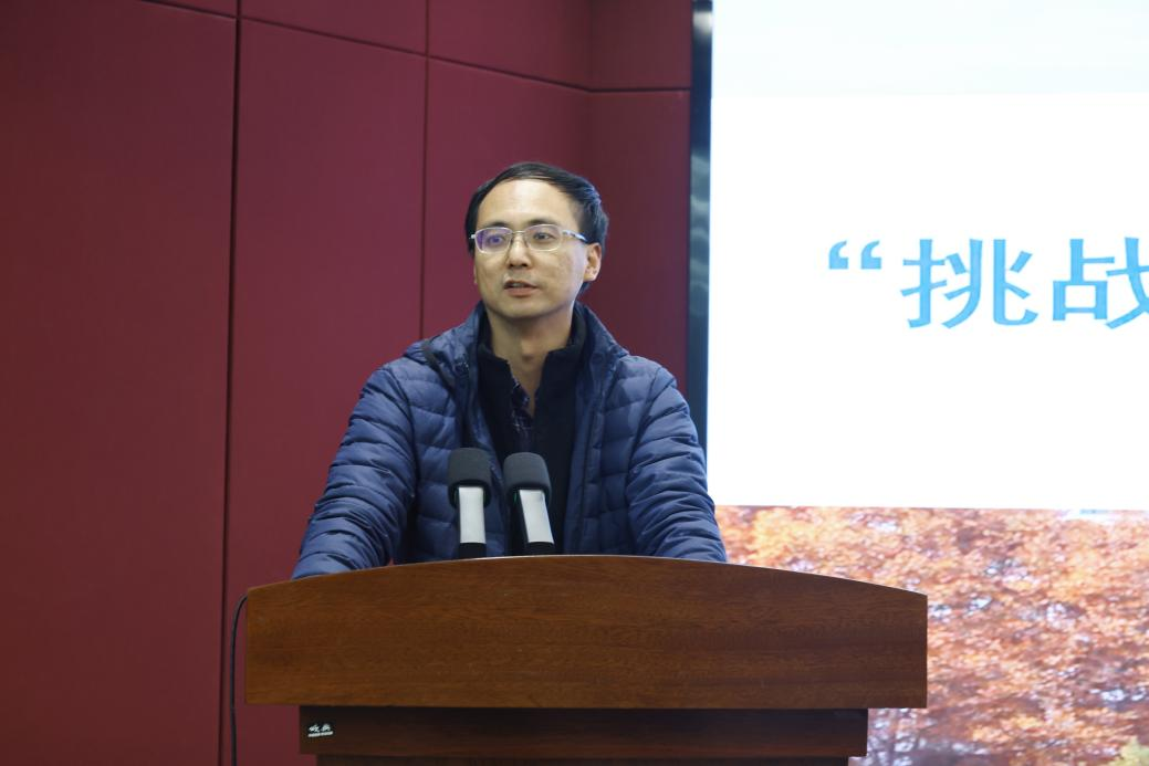 张大维以《“挑战杯”竞赛的选题策划、调查撰写与展示应辩》为题进行讲解。他表示,竞赛作品选题需要具备三度,即“高度”“新度”“准度”。对于作品本身而言,他认为通过丰富的调研数据、严谨的理论支撑以及完善的实践方案来彰显作品的“深度”和“厚度”。在谈及“如何提升作品竞争力”这一核心议题时,他从展位布置和视频制作两个维度进行剖析。他鼓励同学们,在备赛过程中,要认真对待每一个细节,以严谨的态度和高效的行动为作品竞争力的提升奠定基础,希望同学们在竞赛中实现成长、斩获成果。