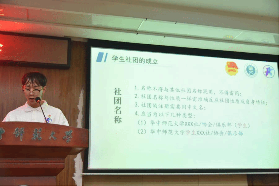 秘书处负责人阳文辉概述了秘书处的主要职责,特别聚焦于学生社团换届流程与指导老师变更流程的阐述,清晰解释了非标准换届时段内社团负责人变更的具体步骤及相关注意事项。