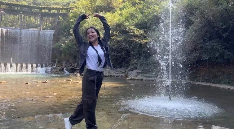 华中师范大学的招诗韵同学打小开始学习舞蹈,舞蹈对她来说,不仅仅是一种艺术,也是她与世界对话的方式,是她情感表达的媒介。站在五龙河瀑布下,她仿佛听到了大自然的呼唤,大自然以雷霆万钧之势,邀请她加入这一场天地间的舞蹈。“阳光透过水雾,仿佛为我披上了一件七彩霞衣,我在光与影的交织中,感受到了前所未有的自由与欢愉,与大自然邂逅一场极致的光影浪漫。”招诗韵同学表示。