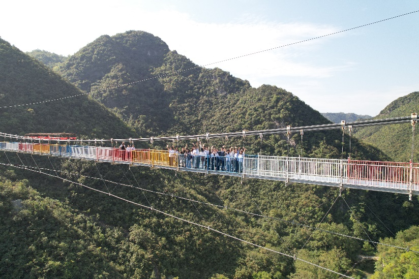 大学生体验五龙湖玻璃栈道