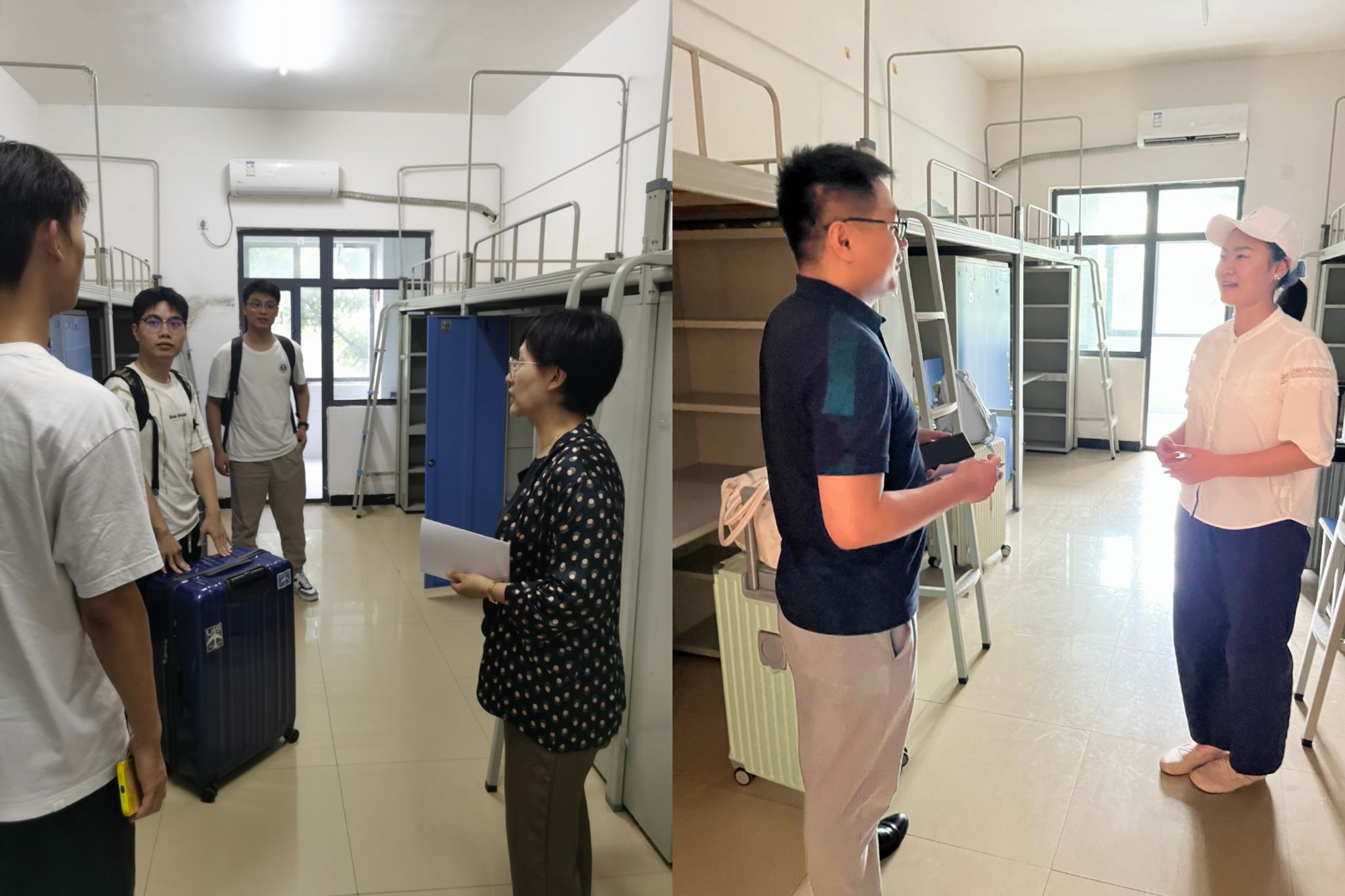 期间,薛惠和张艳斌走访学生宿舍慰问实践队队员,详细询问了学生们的实习情况、工作环境、通勤时间、居住需求等,给学生送去温暖与关怀。