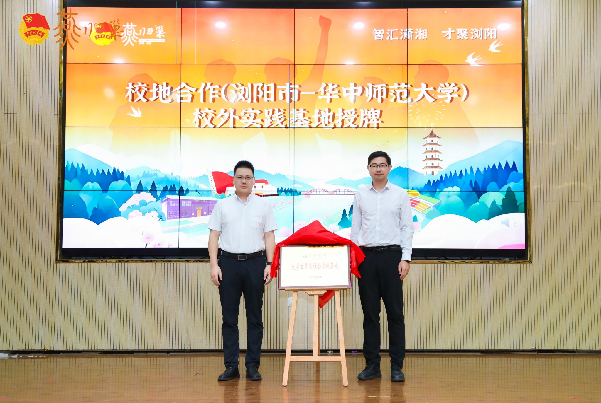在“社会实践基地”授牌环节,陶力与浏阳市委组织部副部长、老干部局局长胡炀共同为“华中师范大学大学生暑期社会实践基地”牌匾揭牌。此次授牌标志着双方在实践教学与人才培养方面开启了合作育人的新篇章,不仅为师生提供了交流学习、实践探索的宝贵机会,也进一步加强了双方在实习实践、人才培养、研学教育、就业创业等方面的沟通协作,以青年高质量发展推进中国式现代化。